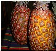 2. Los ingresos de esta variedad provienen de la importación desde Bolivia. La corona simple tiene hojas sin espinas, fruto grande (mayores de 2.5 Kg.), de forma cónica a cilíndrica. Su piel es de color anaranjado rojizo a la madurez; de ‘ojos’ grandes y planos, con las cavidades florales profundos, la pulpa tiene un color amarillento, con bajo dulzor a lo sumo 12 º B y baja acidez.