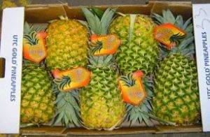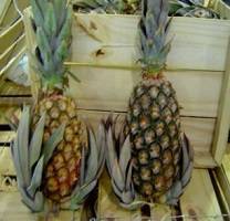 4. También denominada piña ‘Gold‘, ‘Golden‘, ‘Amarilla‘ o ‘Dorada‘. El fruto es muy dulce y jugoso es de color verde amarillento. La pulpa es firme con una coloración amarillo intenso, muy aromática y alto contenido en azúcares. Es más pequeña que otras variedades, pero preferida por su sabor por los consumidores.