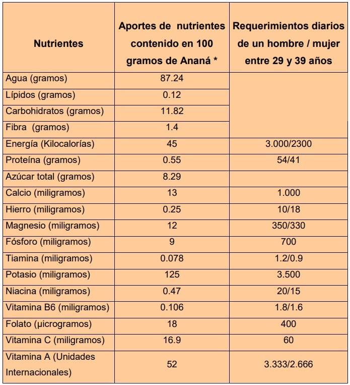 Aspectos nutricionales del Ananá