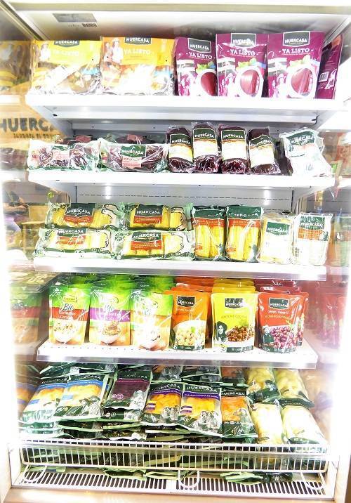Imagen de arriba. En esta nevera de Huercasa hay maiz para la barbacoa, remolacha en sopa o al corte, garbanzos o lentejas cocidos a la castellana, calabaza envasada al vacío, … Ahora tienen tienda on line