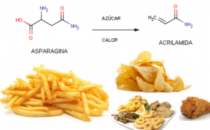 La acrilamida es una sustancia química que se crea de forma natural en productos alimenticios que contienen almidón, durante procesos de cocinado a altas temperaturas (más de 120ºC) y con poca humedad. Se forma principalmente en alimentos ricos en hidratos de carbono (horneados o fritos) como pueden ser las patatas fritas, la bollería o los alimentos infantiles elaborados a base de cereales.